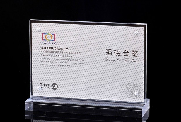 第一、我們經(jīng)常常見的強磁亞克力臺卡,顧名思義亞克力強磁臺卡,是一種以一種吸力比較強的磁鐵為輔助制作