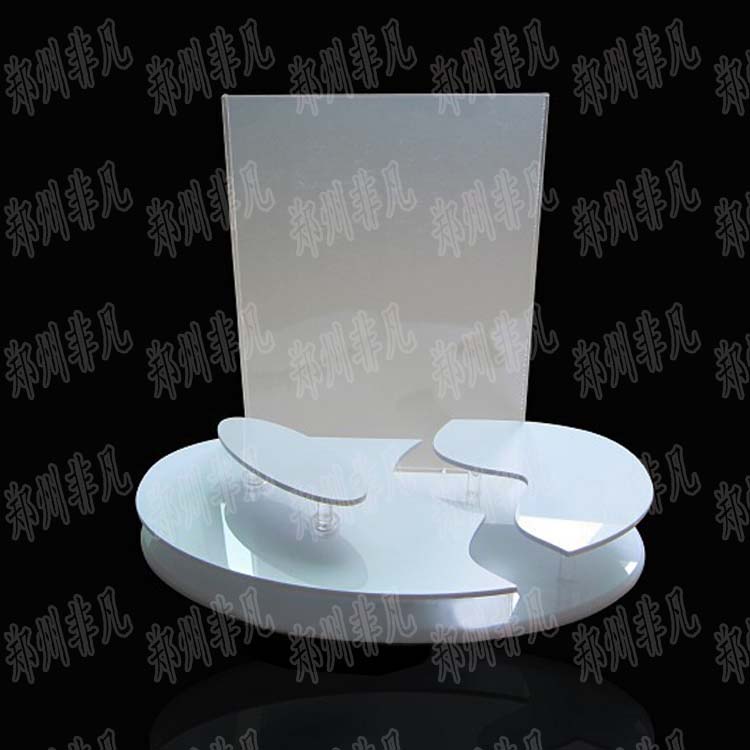 臺式亞克力化妝品展示架多用于水乳、面膜、眼霜等高等護(hù)膚品的展示,由于該類化妝品系列產(chǎn)品居多且價格較貴,為了突出產(chǎn)品地位,該類亞克力化妝品展示架均會配套展示一系列產(chǎn)品。臺式亞克力化妝品展示架的規(guī)格一般較為小巧,做工精細(xì),其亞克力展示架在設(shè)計時以平滑、圓潤為主,一般采用透明亞克力板進(jìn)行制作。