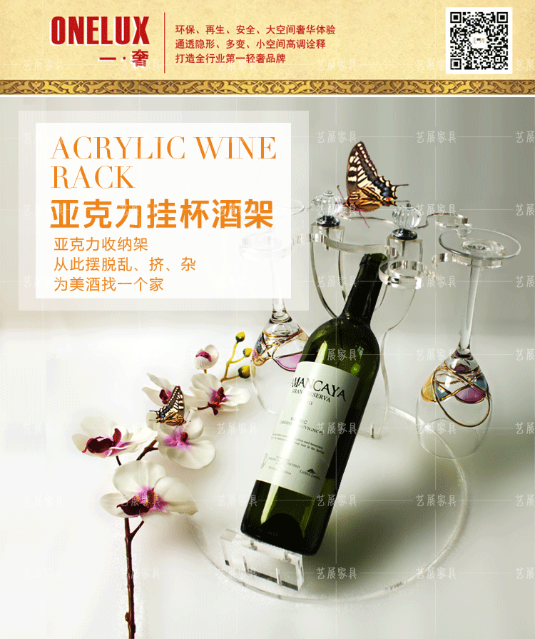 (2)亞克力紅酒架制作采用優(yōu)質(zhì)亞克力,造型獨(dú)特,