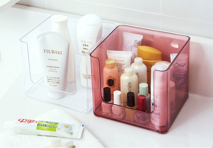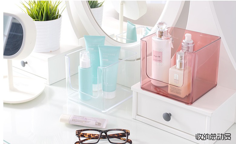 特點:高透明、小而美的亞克力化妝盒設計簡潔明亮,尺寸恰到好處;時尚簡約,用途廣泛(透明設計、開口大方便取物品);