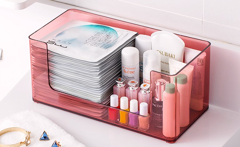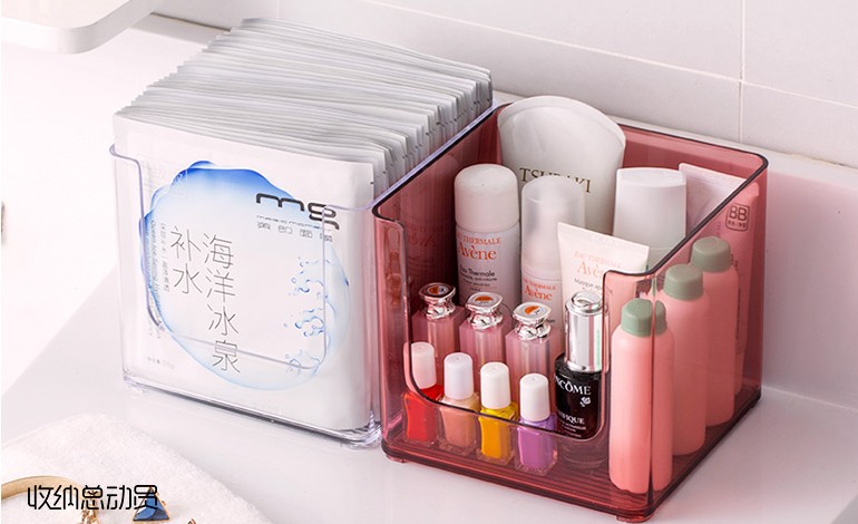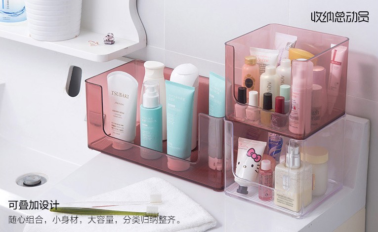 美貌亞克力化妝盒,造型方正,簡潔優(yōu)雅,邊緣弧度圓潤;亞克力化妝盒疊加設計(隨心組合、小身材、大容量、分類歸納整齊.)