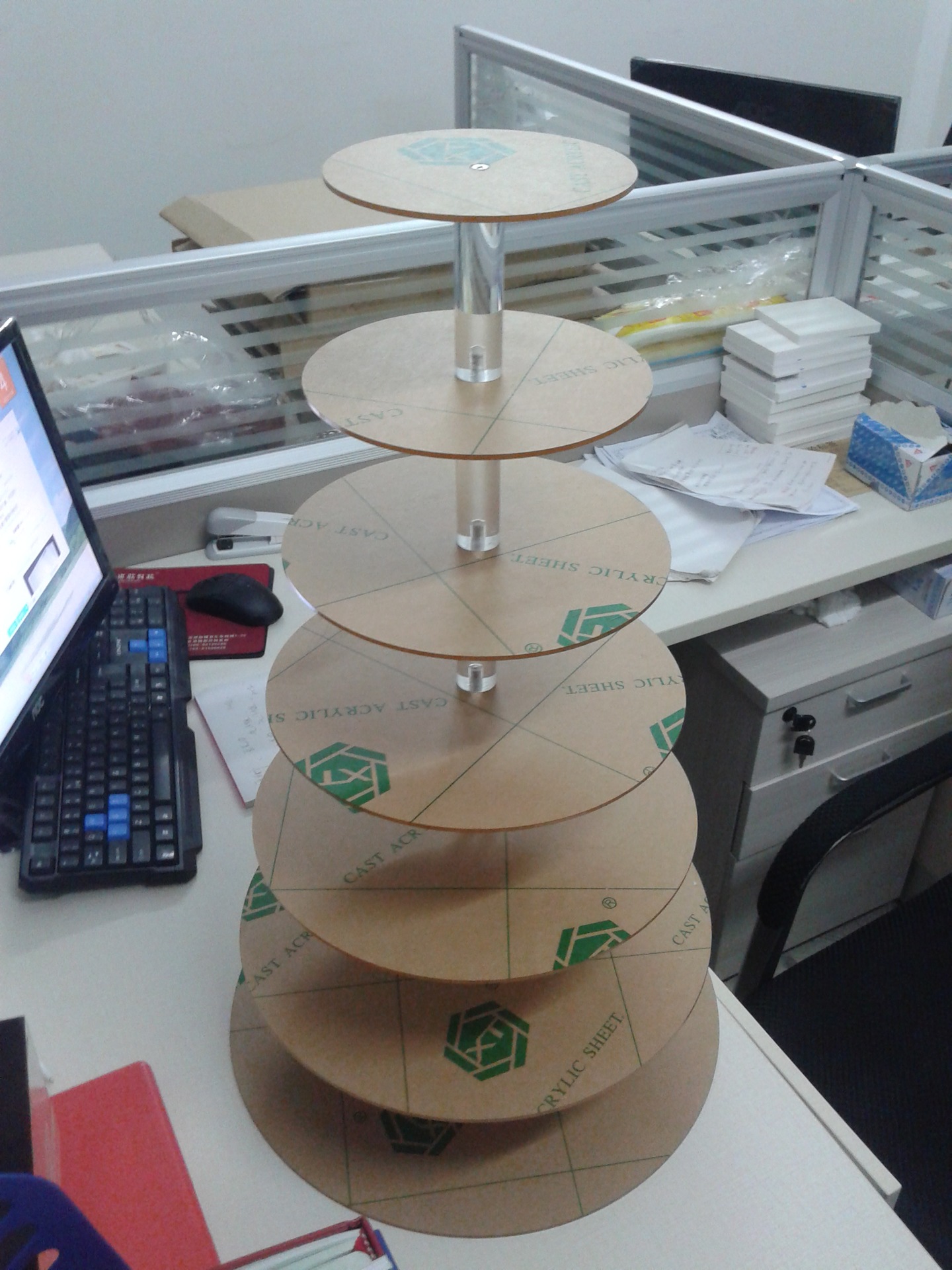 3層亞克力蛋糕展示架圓盤直徑分別為15-20-25cm 厚度:4mm 中間的圓柱直徑25mm