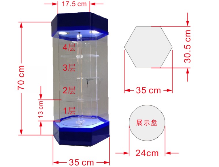 尺寸:詳見(jiàn)下圖(支持任意尺寸的有機(jī)玻璃旋轉(zhuǎn)展示架定制).