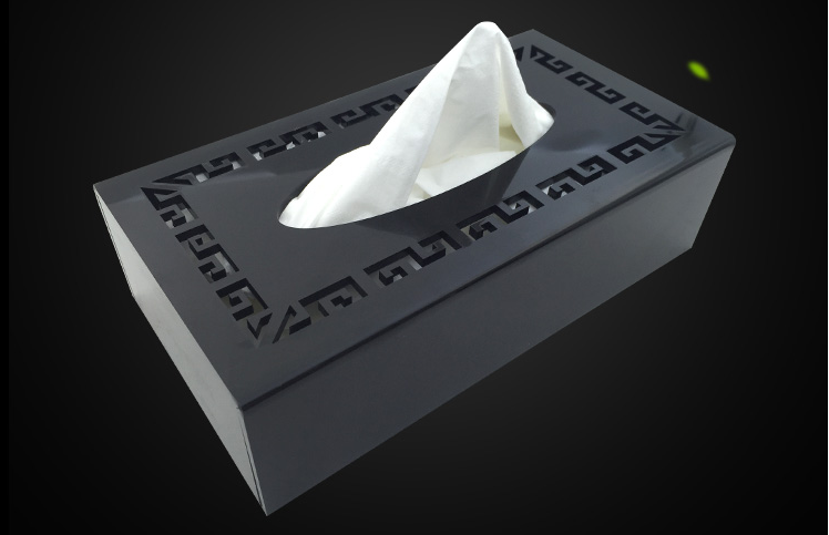 (2)亞克力抽紙盒表面采用激光鏤空雕花,更具美觀;